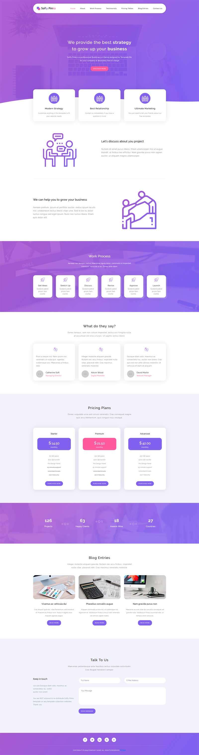 基于bootstrap制作,紫色响应式的商业解决方案,商务咨询,业务合作公司网站单页模板html下载。