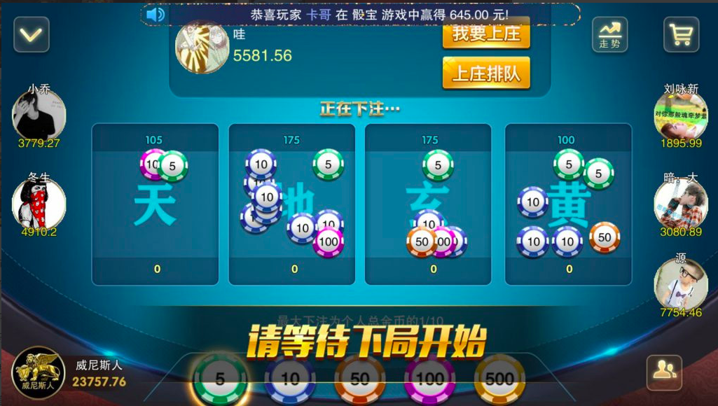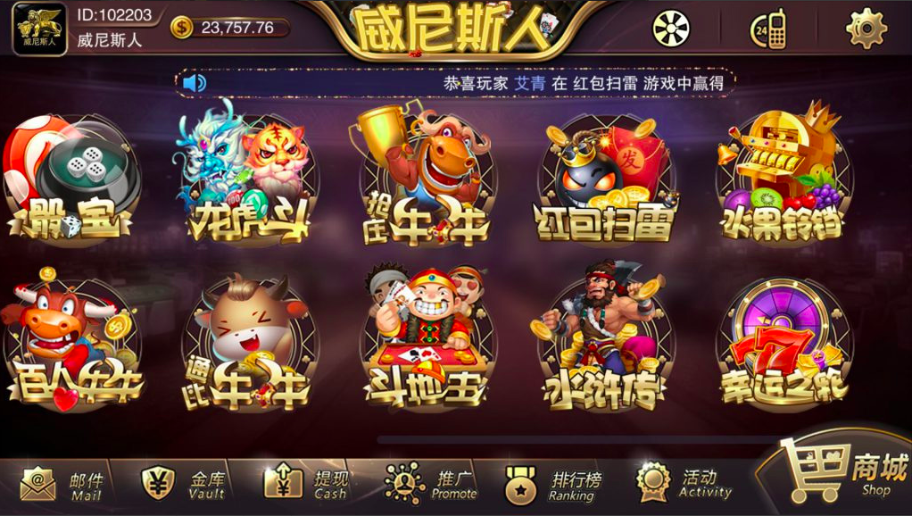 百人场:红包扫雷、龙虎斗、百家乐、红黑大战、骰宝、水果铃铛、百人推筒子、百人牛牛、水浒传、糖果派对、鱼虾蟹、骰宝、幸运之轮