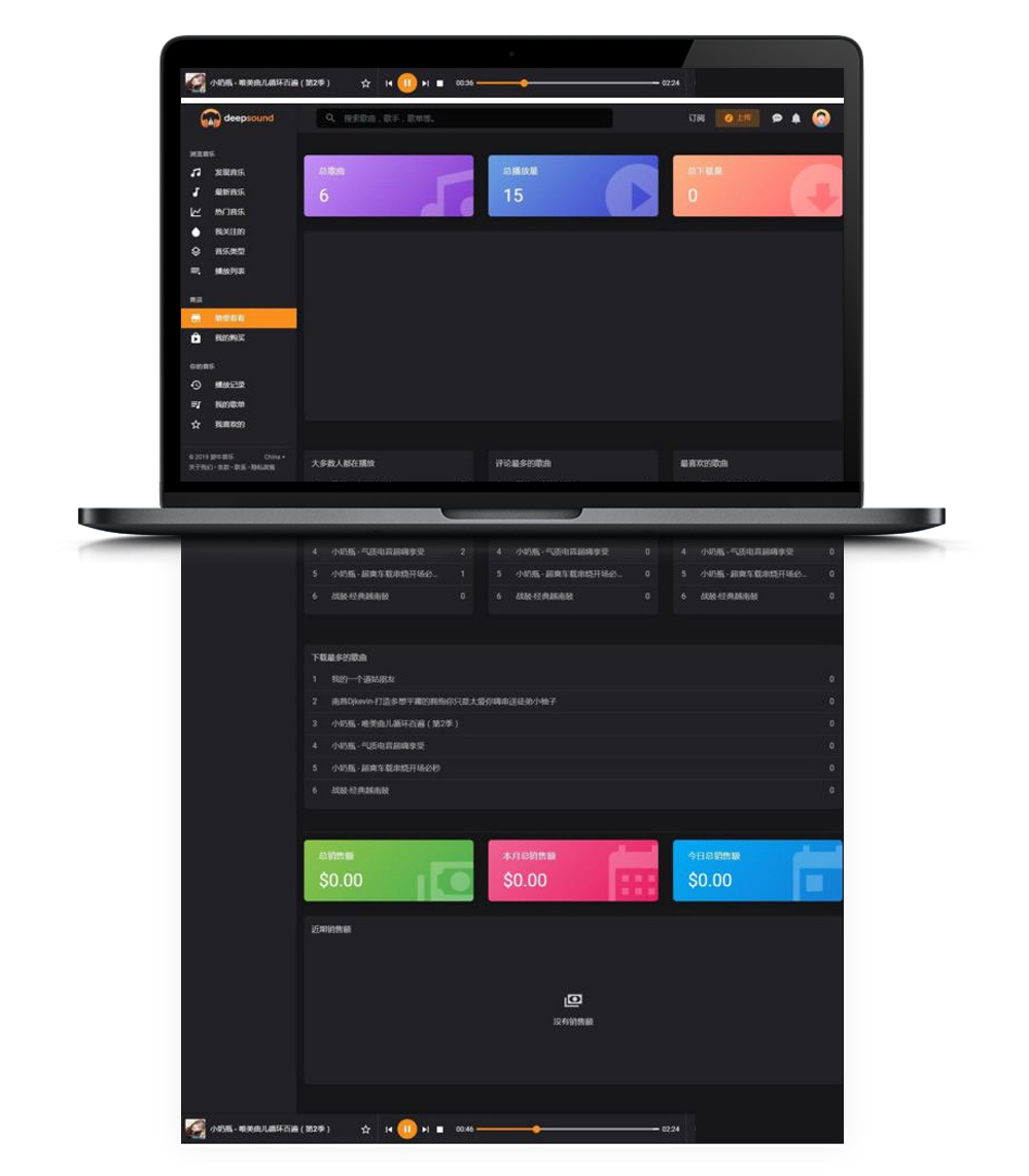 站长整理的黑色非常精美大气音乐歌曲DJ网站源码自适应手机端!!!!
