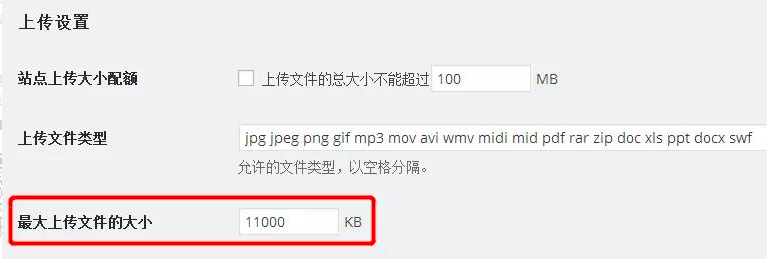 修改的数值应小于php配置文件里允许的最大上传文件大小的值,例如服务器允许上传50M的文件,但Wordpress里不需要那么大,可以在此处设置为20480K,即20M。当然也可以设置为一样大,根据实际需要来