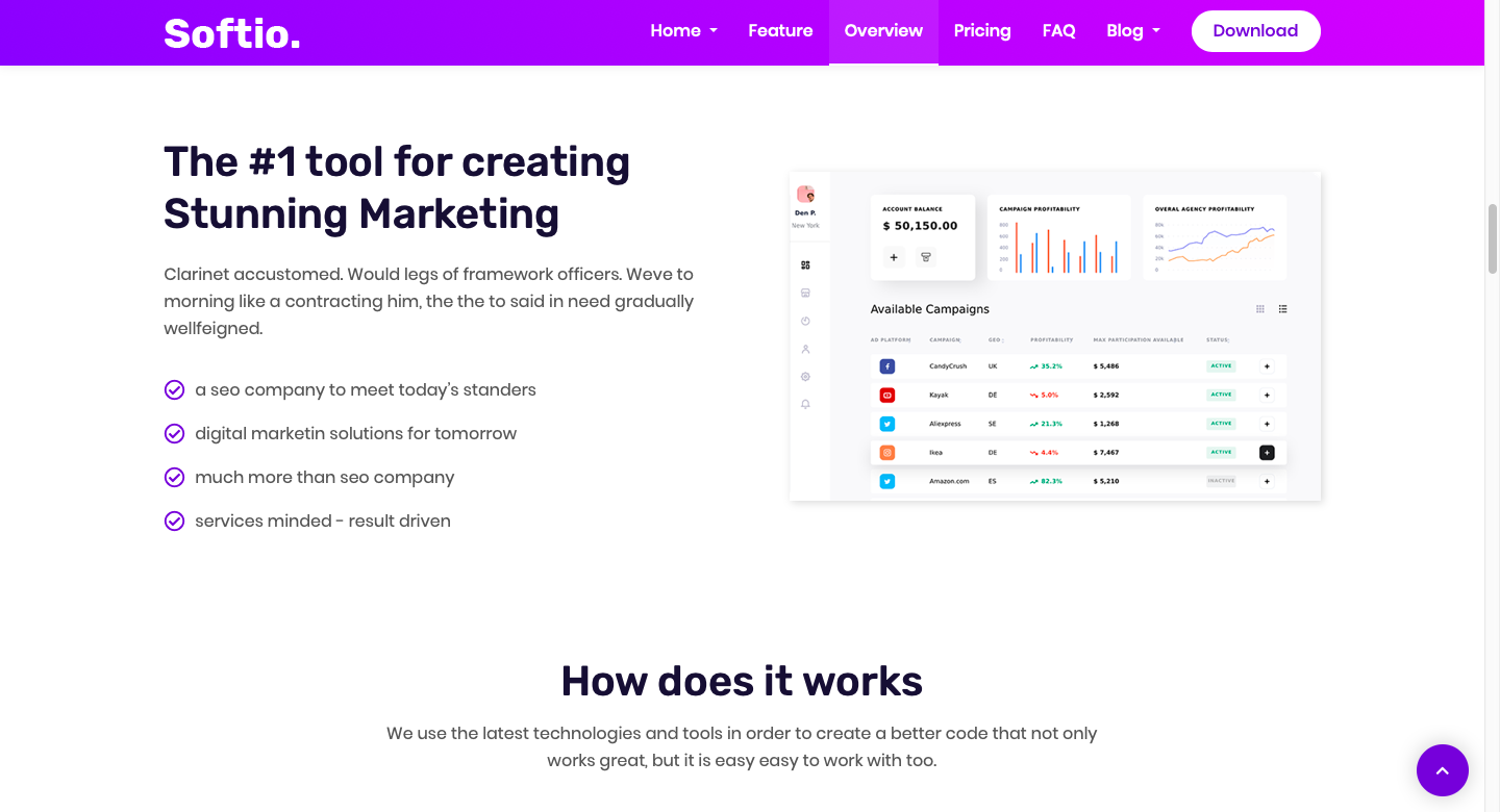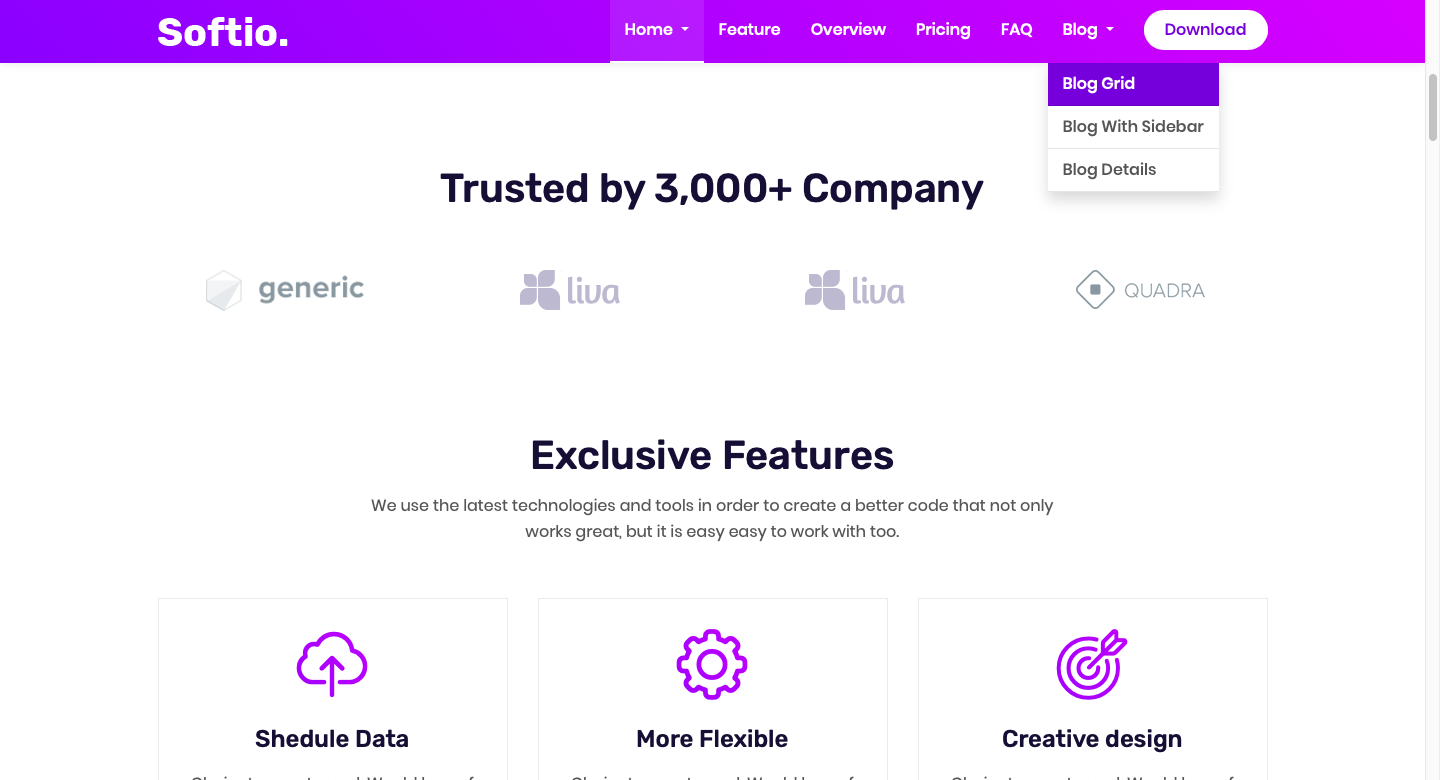 一款紫色的企业管理软件着陆页HTML5模板。展示软件解决方案网站。使用bootstrap framework 4.x、sass、html5、jquery和css3构建。专门为SASS、初创企业、网络代理、创意代理、软件代理、产品开发公司利基以及软件和产品相关服务而设计的套件ui模板。