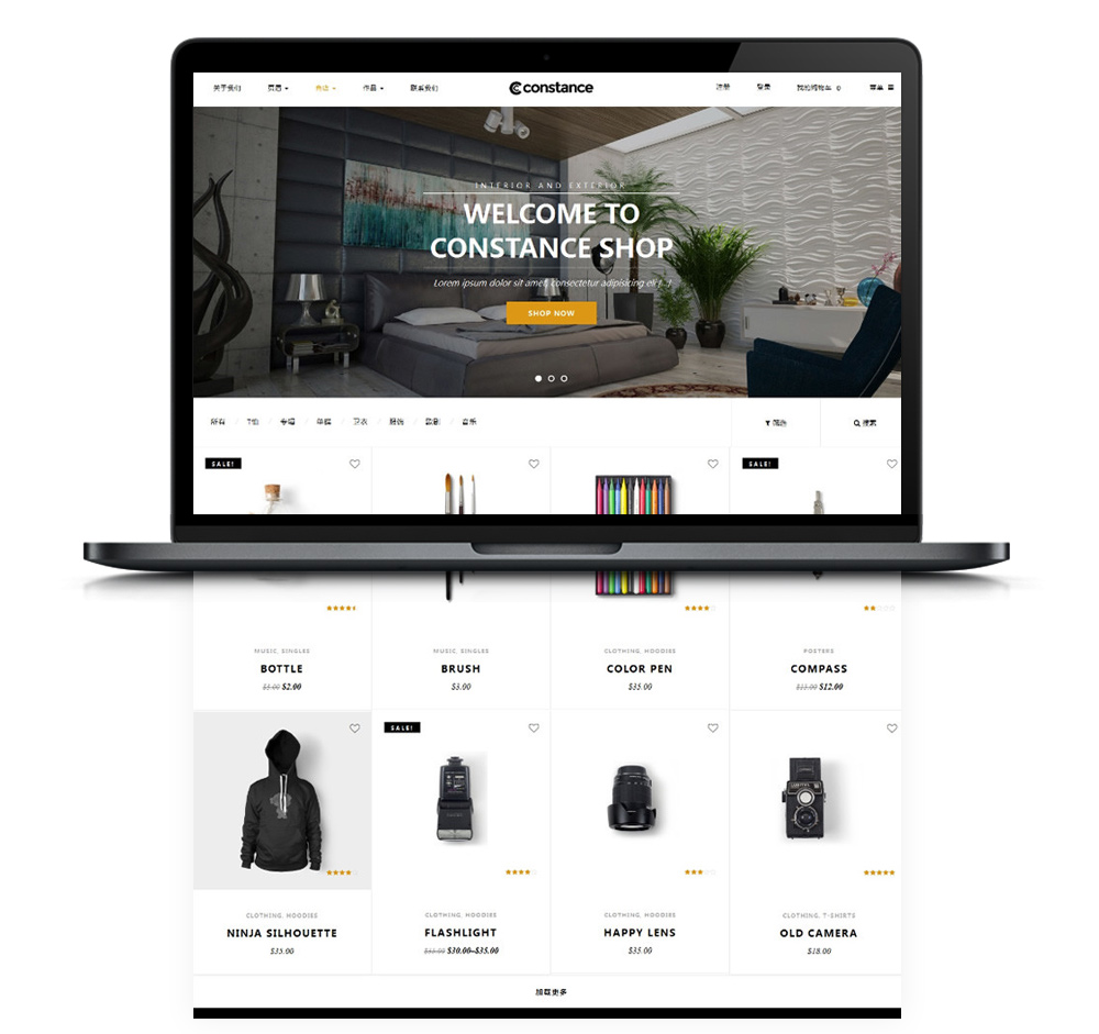 Constance是一款采用ajax加载的电商主题,整合woocommerce插件,可以做出比较好的电商站点。主题提供了扩展选项,提供了多个页眉布局,提供了丰富的元信息选项。是一款不可多得的woocommerce电商主题。现在点金主题网对constance进行了完美汉化,优化了这款电商主题。下面是对这款woocommerce电商主题constance汉化说明: