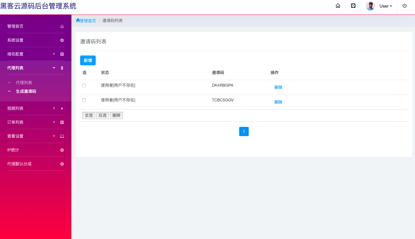 后台生成邀请码,用户注册登录即可