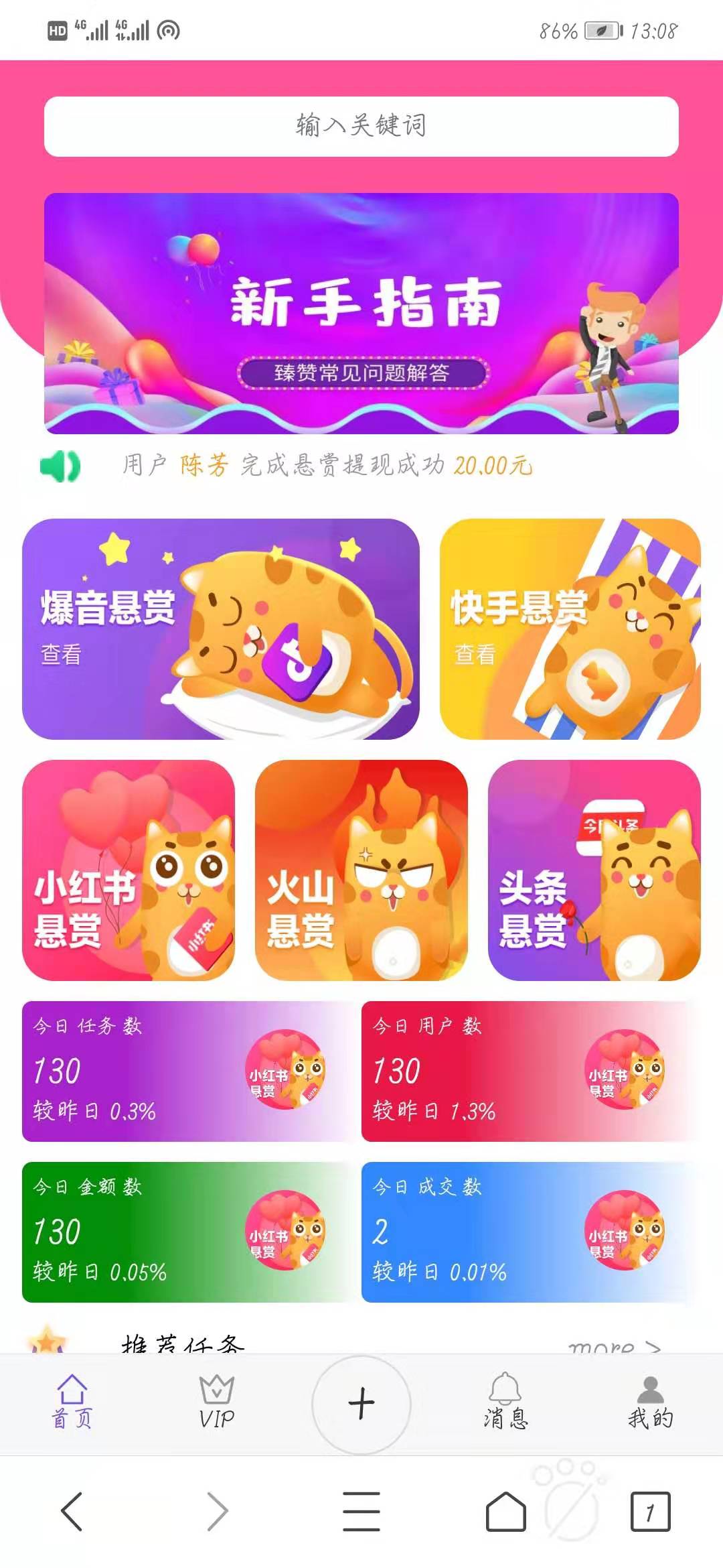 【任务悬赏系统】快手/抖音点赞关注任务赚钱系统带用户任务发布模块[可封装APP]
