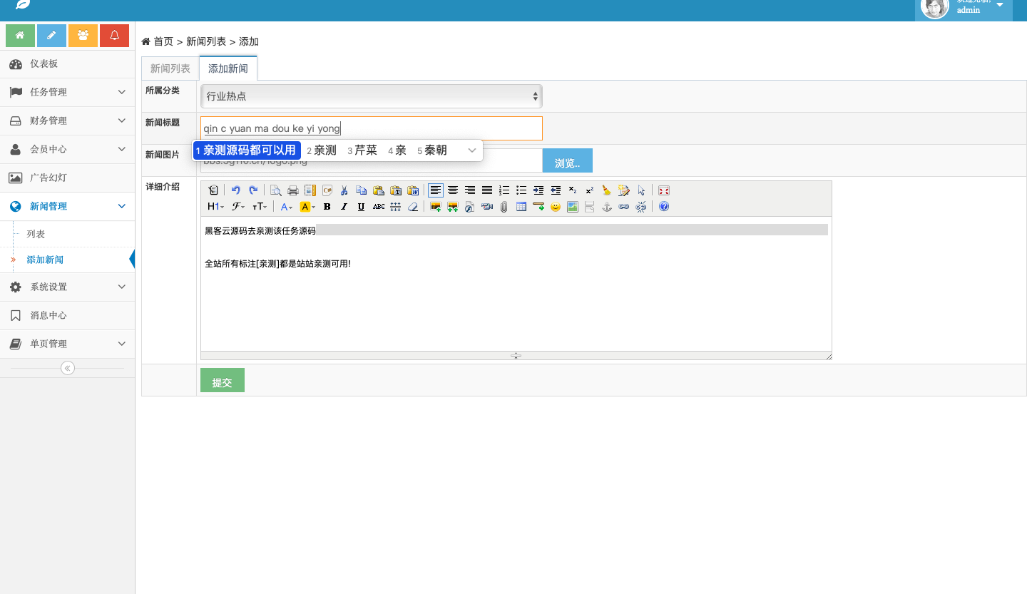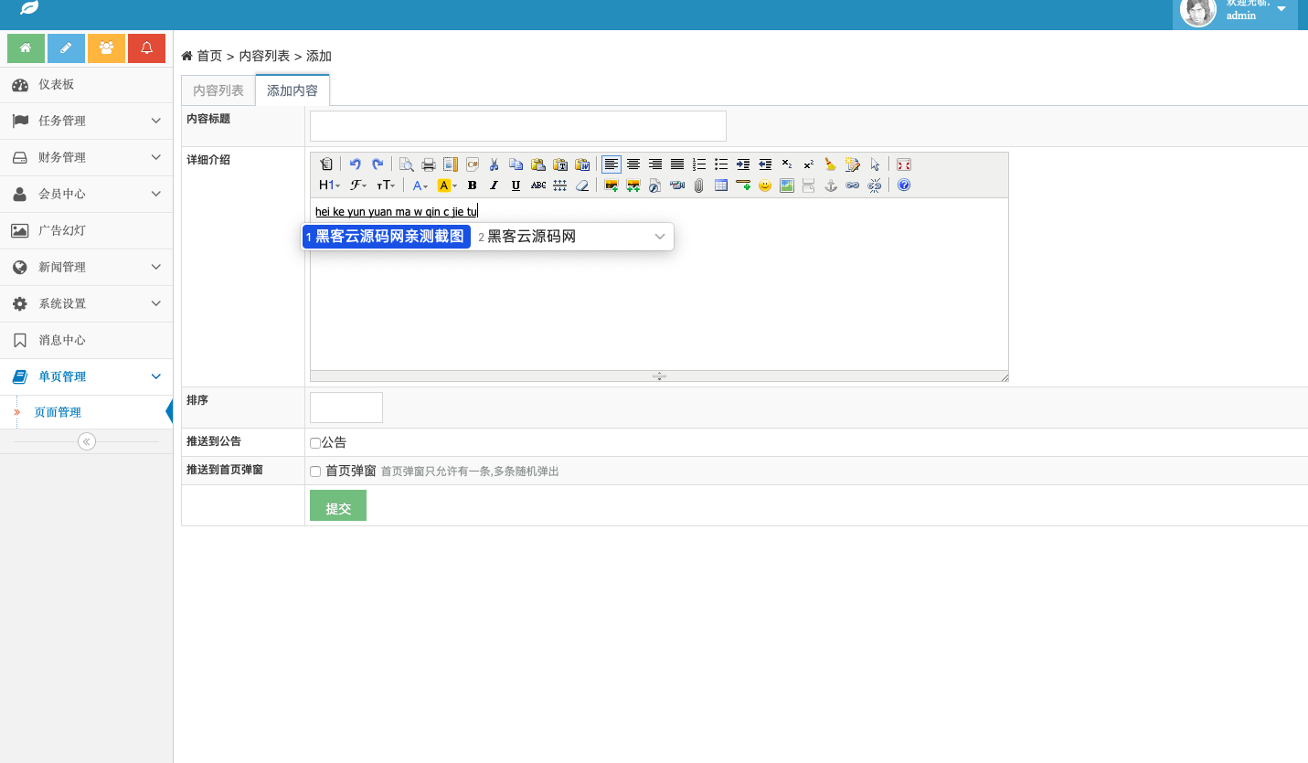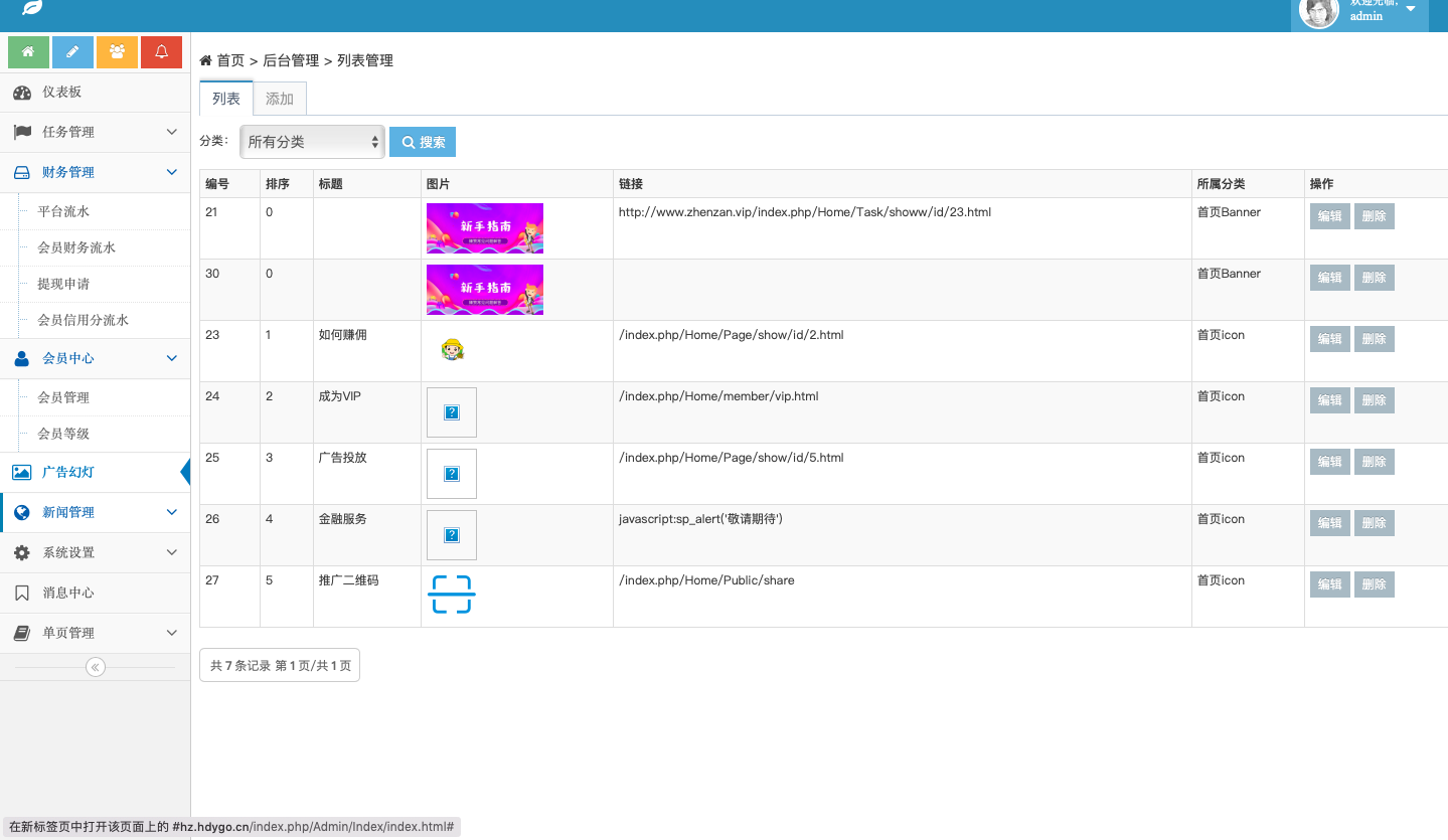 后台截图: