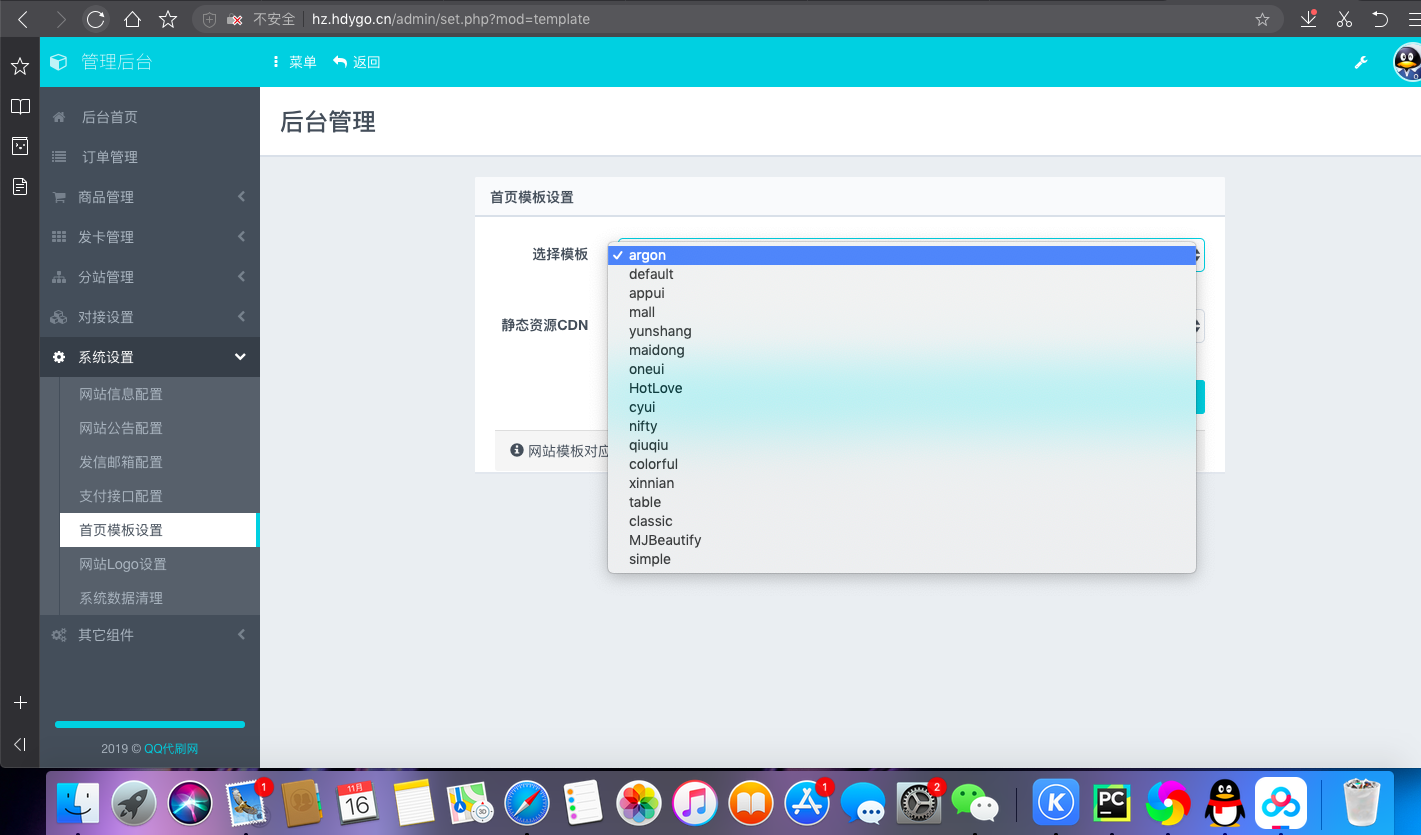 好几套模板,后台看着很漂亮