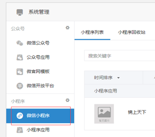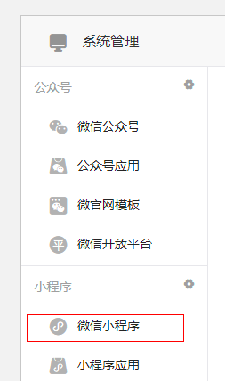 (2)、进入你的微擎后台,点击系统管理—–》左侧菜单(小程序应用)