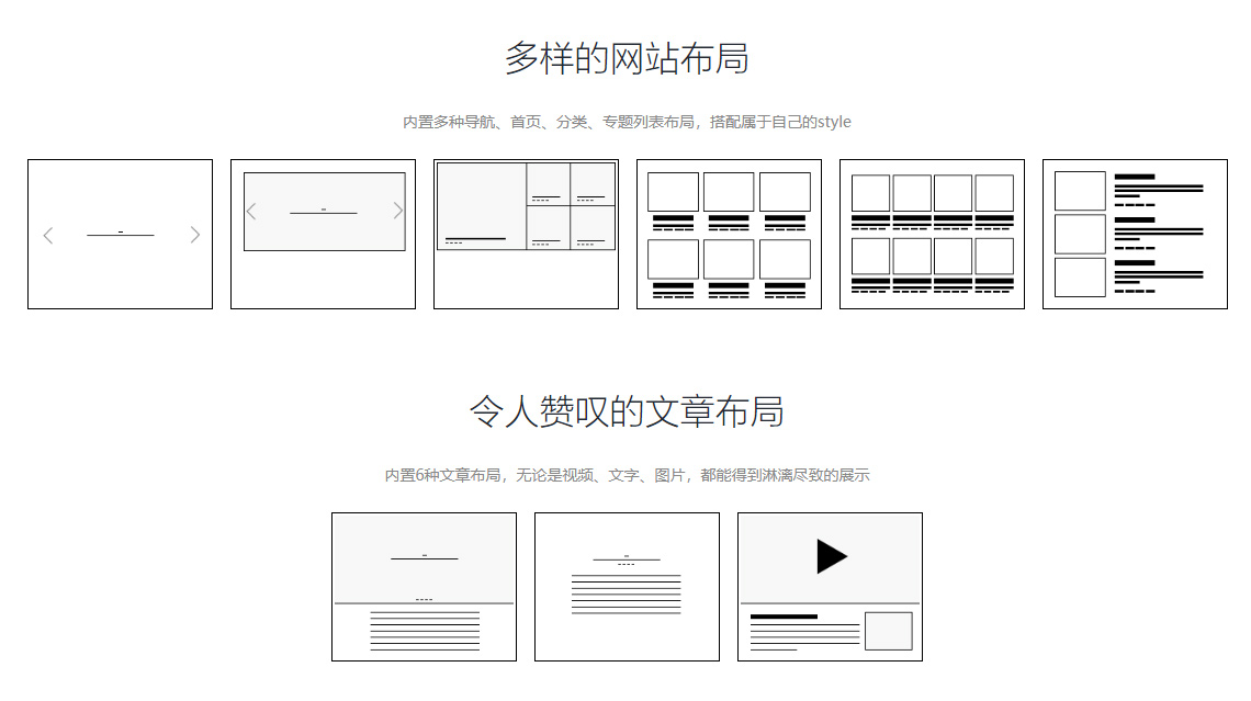 多达6种文章样式,视频、文章、相册、图片都能得到淋漓尽致的展示