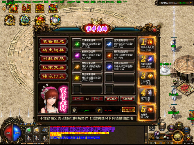 【装备回收】:打开背包可随地回收.装备可换元宝证明声望,多余的证明可回收成杀怪累计值