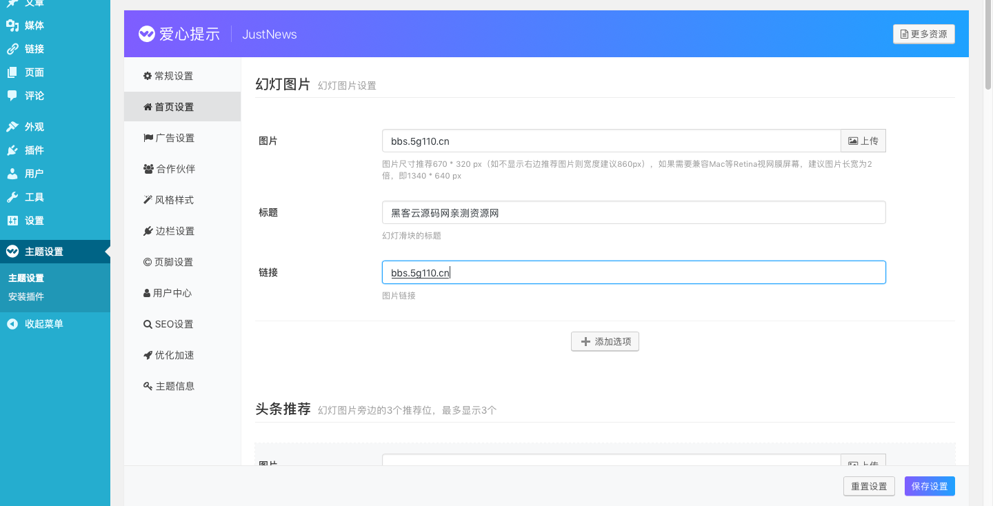 首页幻灯片轮播、头条推荐内容设置;