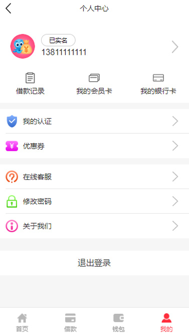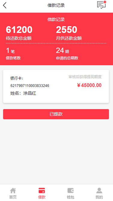 已集成支付、短信、查询借款。支持购买会员、签到。状态短信通知。