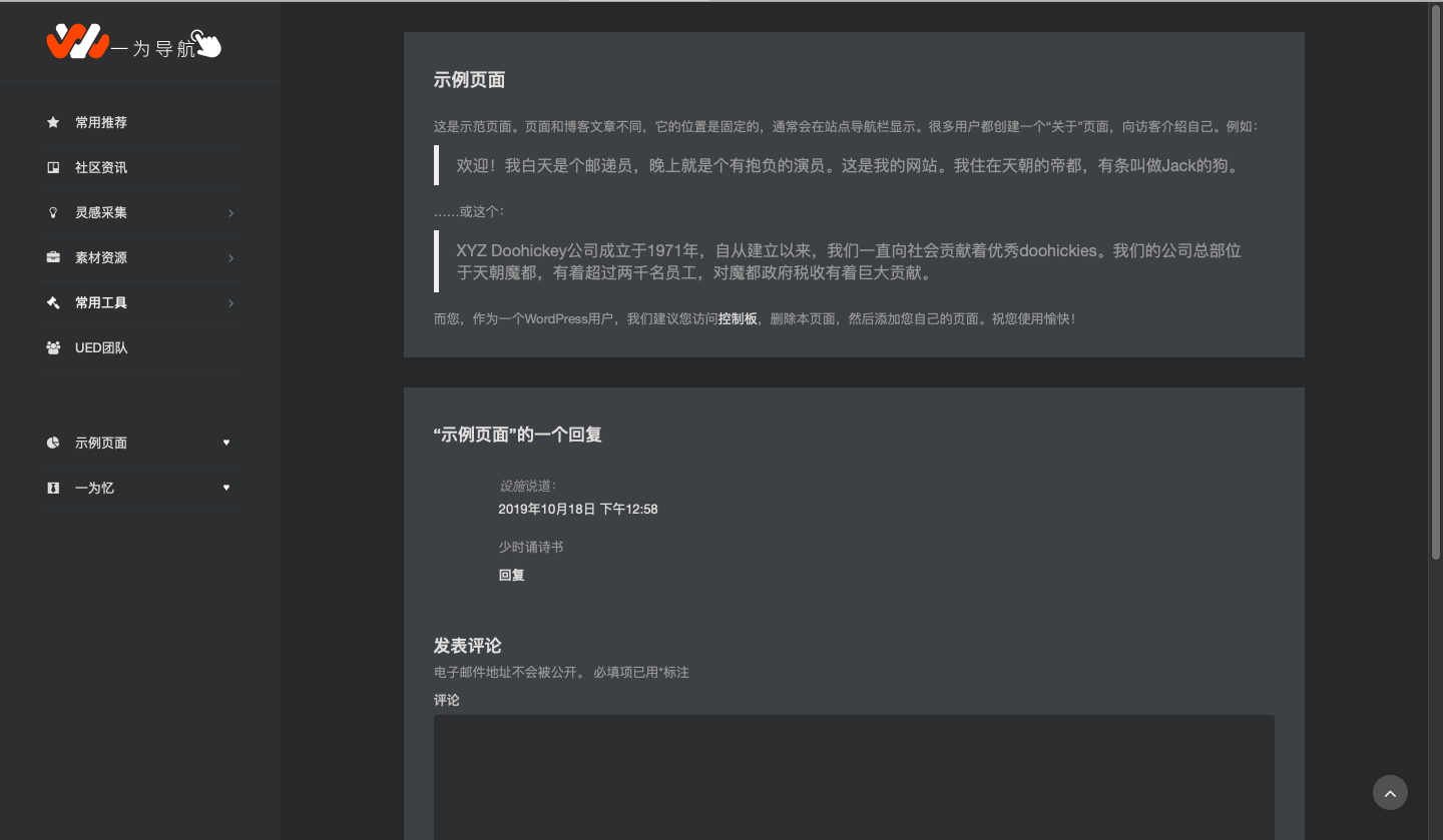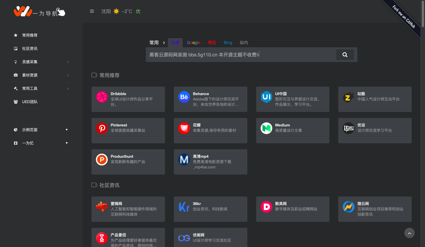 这是一款导航主题,当然用的是WordPress制作,开源,免费放在GiT上, 前台设计来自Viggo ,设计由owen0o0完成。