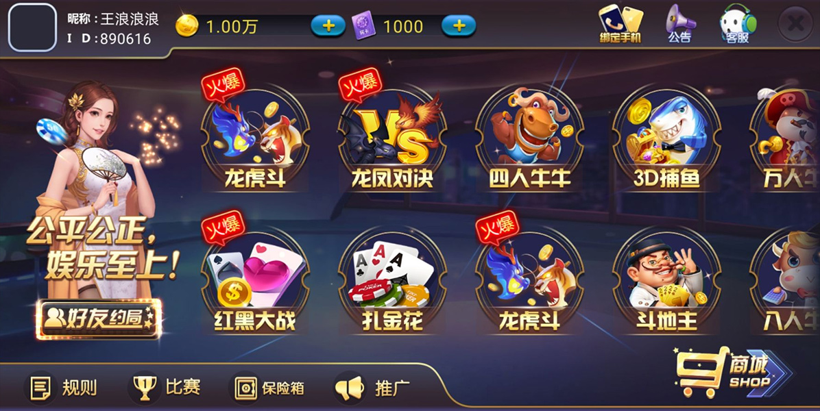 扑克场:十三水、八人牛牛、炸金花、四人牛牛、四人牌九、癞子斗地主、斗地主