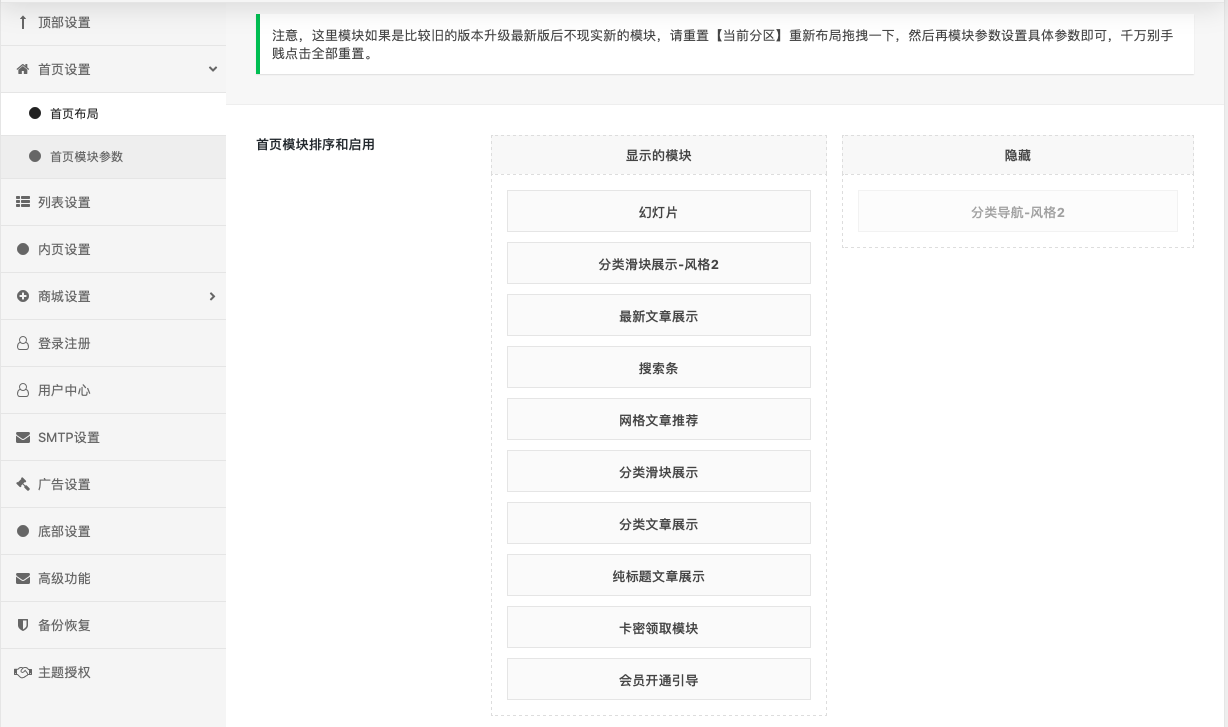 站长笔录:关于一些 自带[拖拽] 、 [首页位置]功能主题,本教程会详细讲解并提供给有需要的朋友
