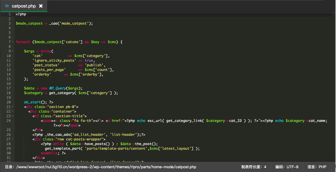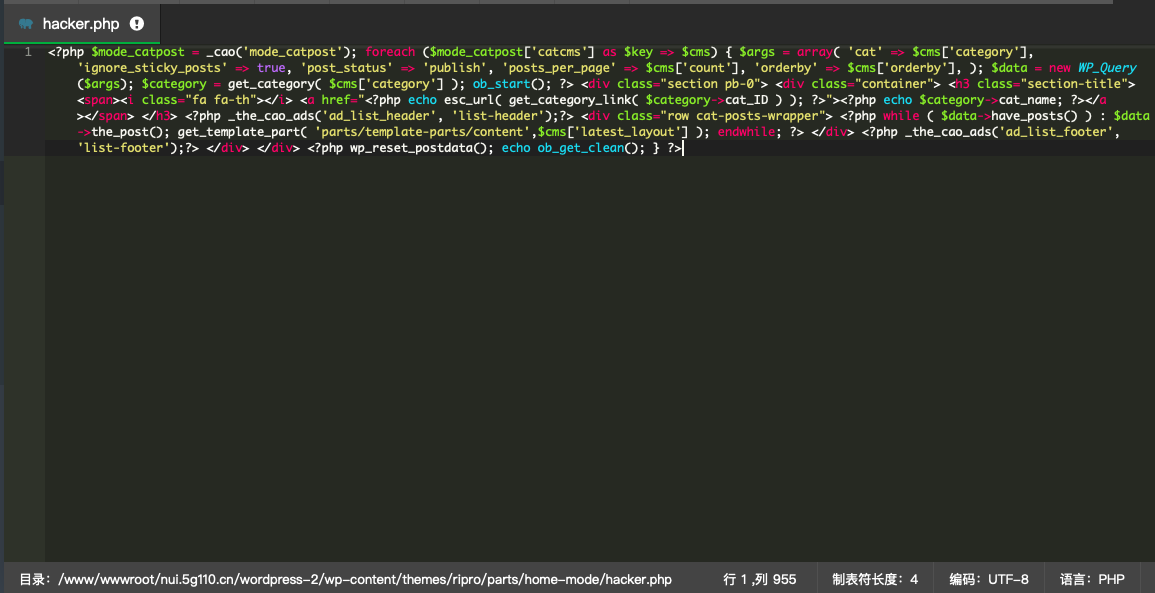 文件路径: 域名/wordpress/wp-content/themes/ripro/parts/home-mode
