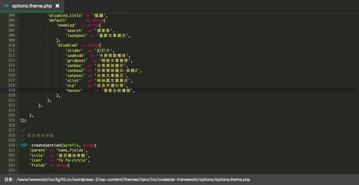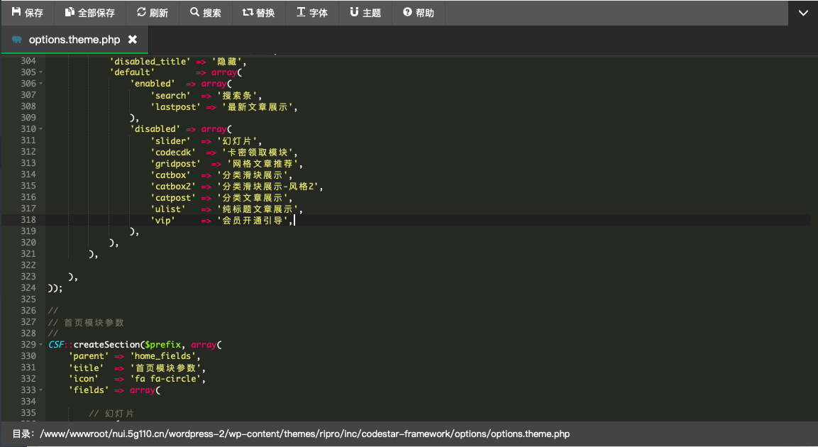 打开我们的文件路径(ripro主题演示) 文件: options.theme.php