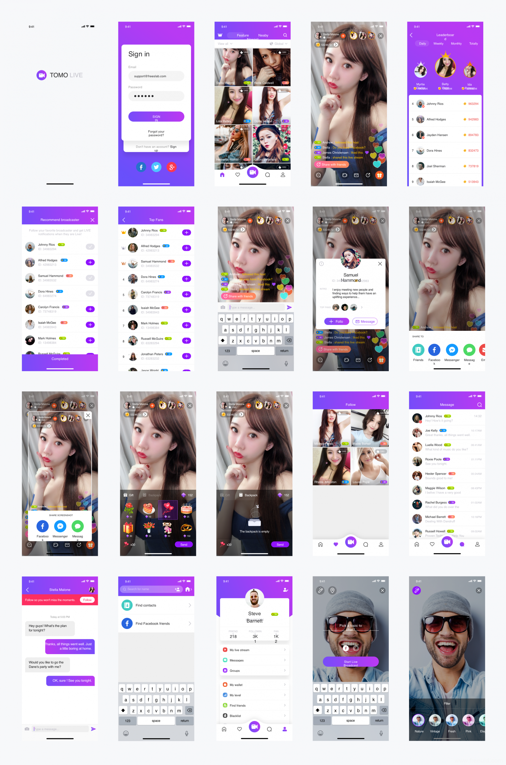 超完整手机直播类app UI kit源文件,直播类sketch源文件下载,直播app UI源文件下载