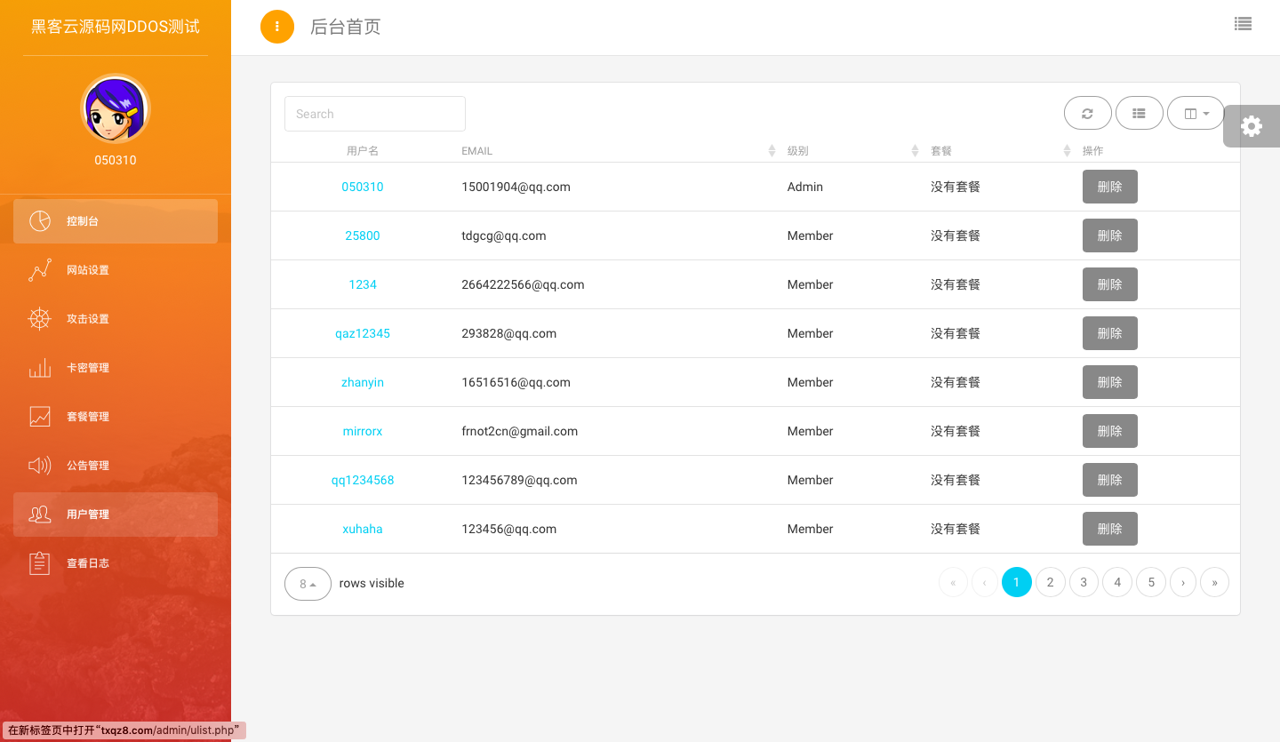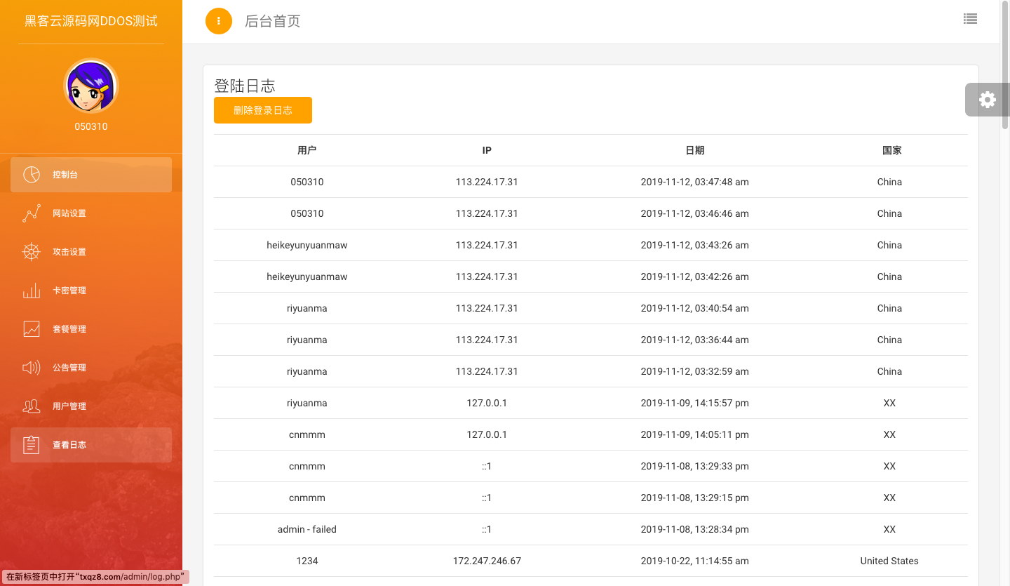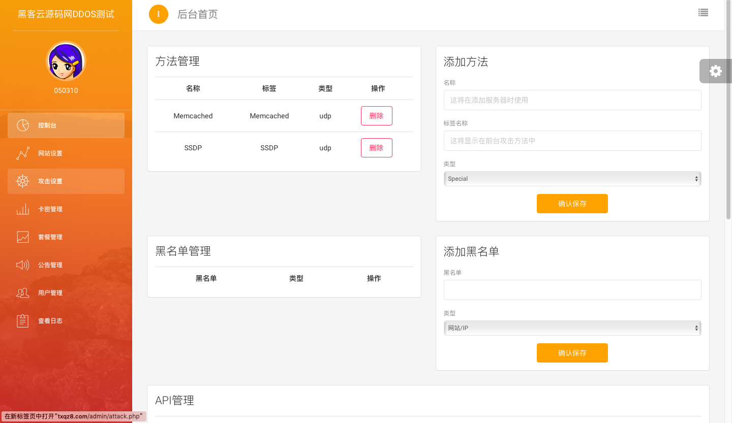 后台需要在前台登陆唯一的管理用户名050310密码050310ysp